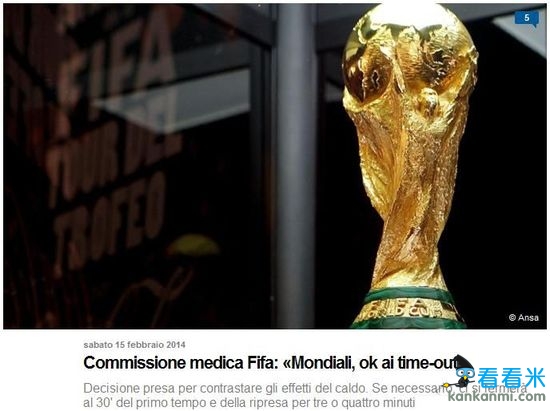 世界杯也有喝水时间! 国际足联:温度湿度成衡量标准