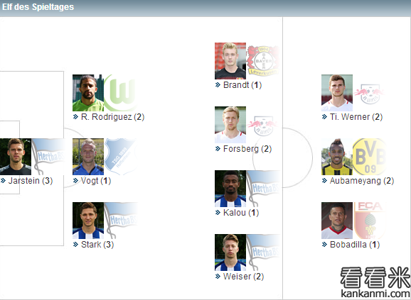 德甲第10轮最佳阵容:美羊羊强势领衔