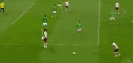 这一场比赛哪能让你娃抢尽了风头是不是,克罗斯表示不服!你这饼吃的如此开心,看我来一脚贴地弧线斩~~~小爷我动一动大腿,割起一片青草!