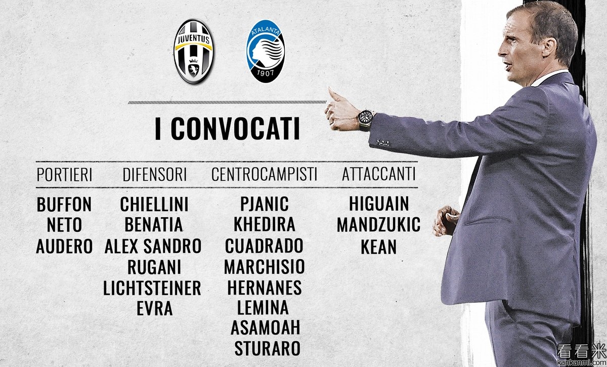 尤文图斯即将于本周末的意甲联赛中对阵亚特兰大,日前,球队公布了本场比赛的大名单。