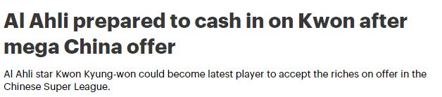 《sport 360》表示权敬源缺席了本周四迪拜阿赫利与沙迦的比赛,这或许是他离队的信号。