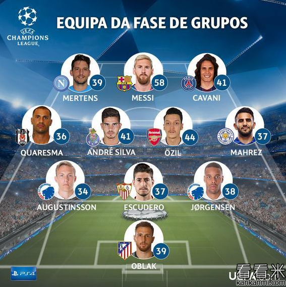 欧冠小组赛最佳阵容:梅西领衔 德甲无人入选