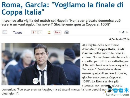 加西亚担心补赛打乱赢球节奏 罗马补赛日期敲定
