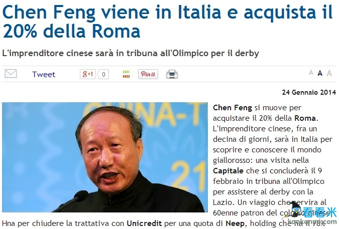 中国商人收购罗马 砸3000万拥有20%股份