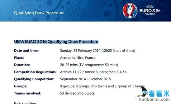 2016欧预赛分档:西德英意荷葡成种子 法国也参赛