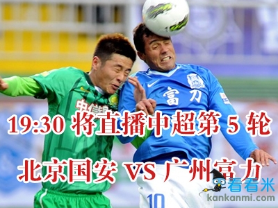 19:30将视频直播中超第5轮 北京国安VS广州富力
